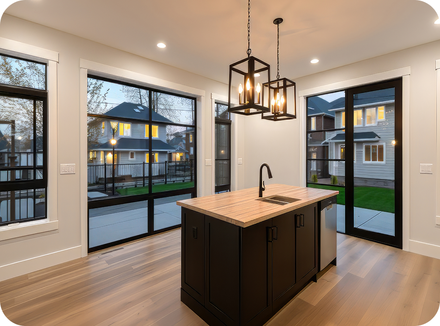 Custom cabinetry, premium fixture installation, tile work, and lighting design—the heart of your home, perfected.