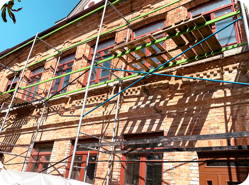 Tuckpointing, brick replacement, and stone restoration to address weather damage and aging.